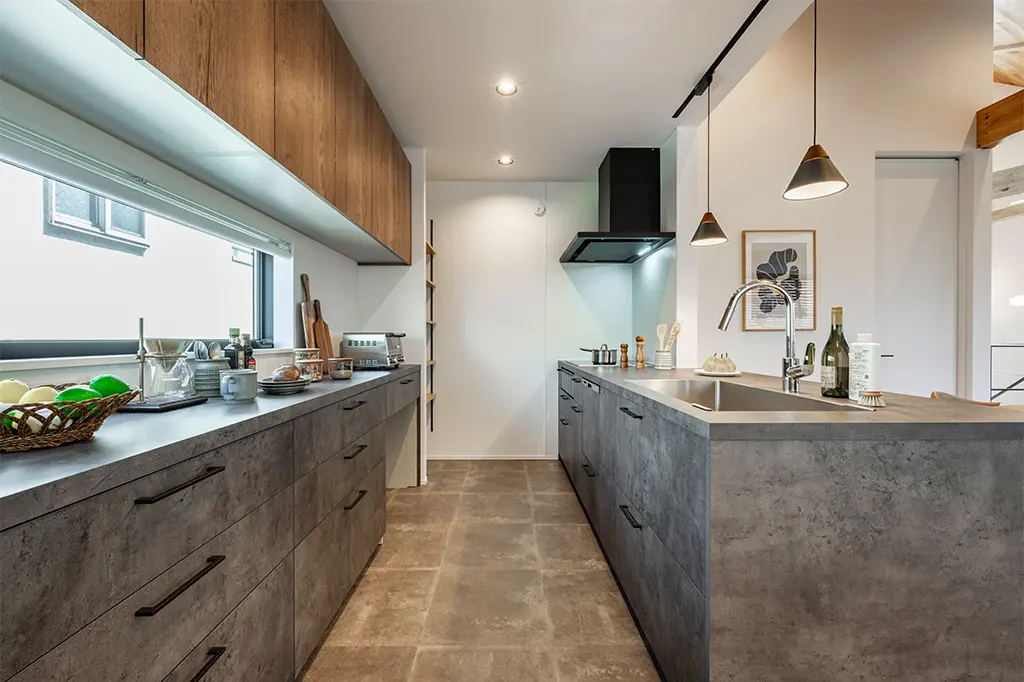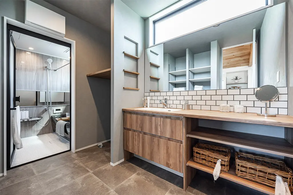 外壁/東レラップサイディング 玄関ドア/断熱ドア キッチン/グラフテクト(混合水栓、食洗器、IHヒーター、バックセット(ダストボックス収納スペース付き) 洗面化粧台/アイカ スマートサニタリー 内装建具/天井迄のハイドア 階段・手すり/鉄骨スケルトン タモ材 玄関ホール他天井/オーク板張り部分有 水廻り床/耐水性の有るフロアータイル使用 玄関ホール・LD床/無垢オーク材 |